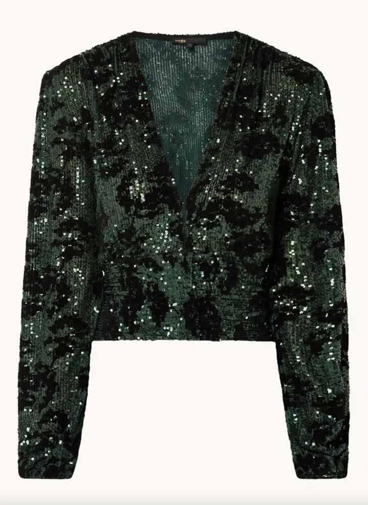 Donkergroene top met V-hals en pailletten Maje € 235