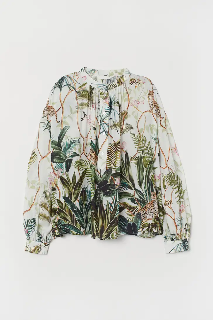 1. Wijde blouse met bladdessin en halsboordje H&M € 24,99