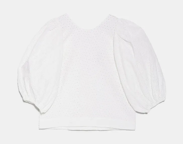 3 Blouse met pofmouwen en opengewerkte borduursels Zara € 39,95