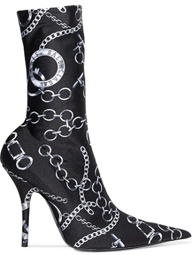 De hipste soklaars van dit moment met kettingprint en naaldhak: Balenciaga € 1.195