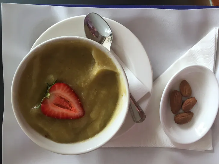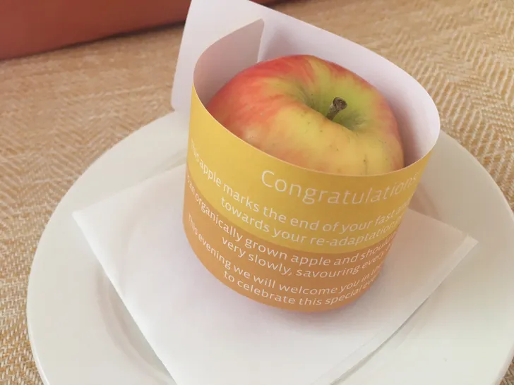 Vandaag breek ik met het vasten. “Break the fast' zoals ze hier zeggen. Ik ben inmiddels 5 kilo afgevallen ( ik ga de weegschaal steeds leuker vinden) en zal ik nu heel langzaam mijn calorie toename van 250 naar 800 verhogen. Voor de lunch krijg ik een appel compote op mijn kamer. Dit ziet er precies uit als het van der Valk schaaltje appelmoes maar dan met een aardbei. Vast heel erg Spaans. Ik heb er moeite mee. Allereerst omdat ik huiverig ben voor gepureerde dingen. Alles wat op baby voeding lijkt vind ik vies. Noem het een tic. Ten tweede heb ik moeite om weer te gaan eten. Ik baal ervan. Zat er 10 dagen zo lekker in. Moet je voorstellen, 10 dagen niet eten, niet aan eten denken, geen honger hebben, geen boodschappen doen, niet meer ontbijten, lunchen, dineren, koken. Dat scheelt je zo al 5 uur per dag. Ik ben echt zenuwachtig voor wat komen gaat. Kan ik het wel? Alle verleidingen liggen weer op de loer. Wat mag ik eten, wat kan ik eten, zodat de kilo’s eraf blijven en meerdere kilo’s zullen volgen? Gelukkig heb ik morgen een afspraak staan met de diëtiste. Hopelijk zal zij mij kunnen begeleiden naar de volgende stap.