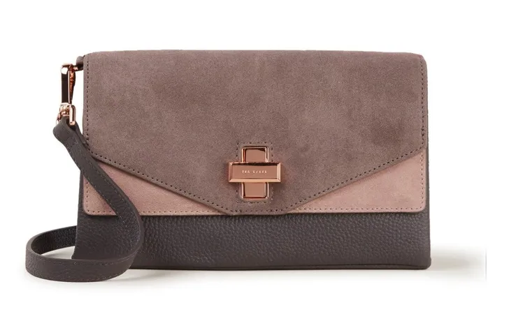 Suède tas met leren details Ted Baker via de Bijenkorf van € 205 naar € 143