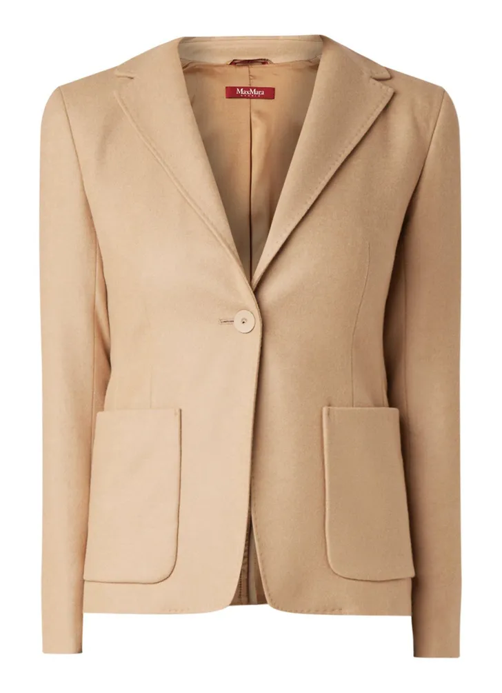 Beige wollen jasje Max Mara via Bijenkorf van € 569 naar € 398