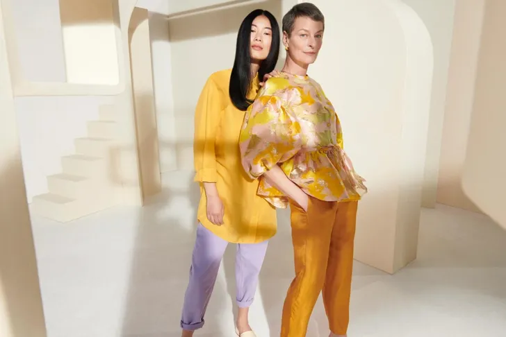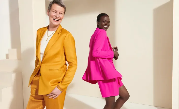 Die doen wonderen voor je uitstraling als je boven de vijftig bent en je teint wat kleur verliest, je ziet er meteen jonger en krachtiger in uit. Bij voorkeur hou ik het verder casual: een pak met een mooi T-shirt eronder en een lievelingssieraad erbij is casual chic, zonder dat het meteen 'Wall Street' wordt. Voor warme dagen: een jasje en bermuda. Op de foto een gele Scotch & Soda blazer, een gele Scotch & Soda broek en een Adidas T-shirt. Het roze pak bestaat uit een Anneloes blazer en een Anneloes bermuda.
