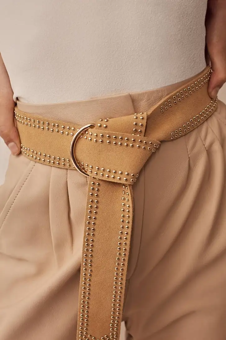 Deze Loretta riem van The Kaia is een van mijn favorieten: breed genoeg om definitie aan je silhouet te geven, maar tegelijkertijd ook zacht en soepel genoeg om makkelijk te dragen. Plus: studs zijn trending deze zomer.