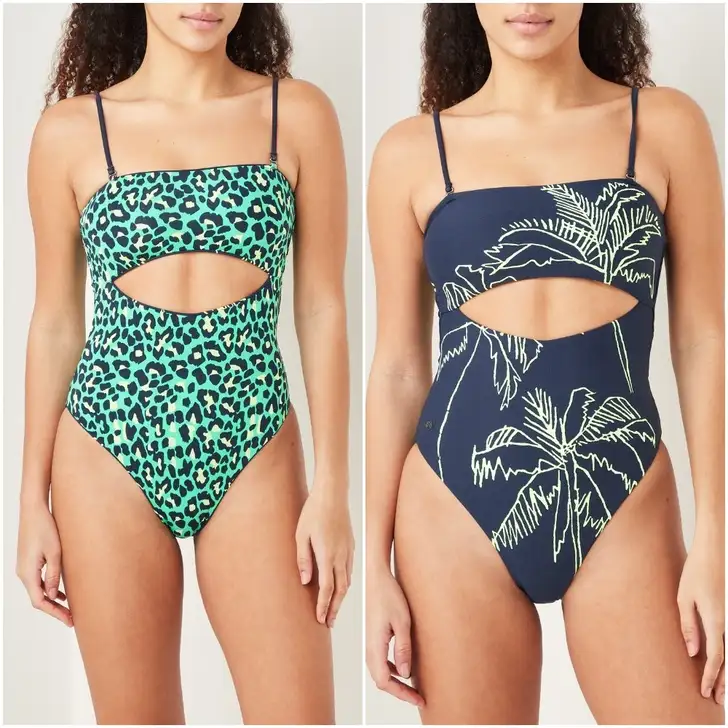 Goede kwaliteit en je kunt 'm ook nog eens binnenstebuiten dragen: ideaal voor 'travelling light' op vakantie. Aan de ene kant heb je een panterprint, aan de andere een palmenprint en hoe het ook draagt, die 'brievenbus' maakt het sexy.