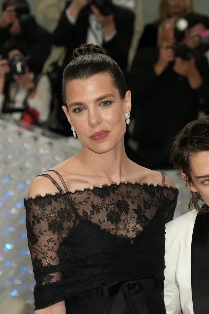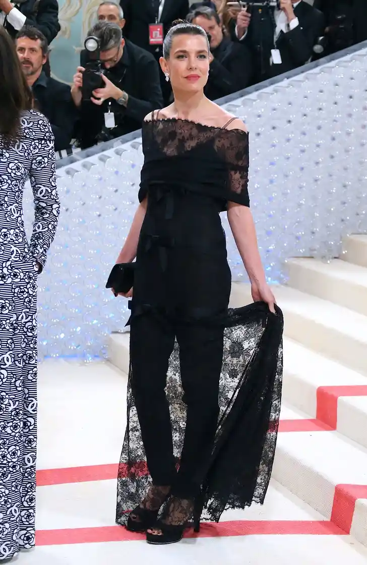 Natuurlijk was Charlotte Casiraghi daar ook bij aanwezig. De dochter van prinses Caroline van Monaco groeide door de jaren heen uit tot zijn oogappel, zijn lieveling en uiteindelijk ook tot ambassadrice van Chanel. Het zal je dan ook vast niet verbazen dat de jurk slash jumpsuit van Charlotte uit de koker van het Franse modehuis komt. Het gaat om een ontwerp uit 1996, dat voorzien is van één van de vele handelsmerken van Lagerfeld: zwarte strikken.