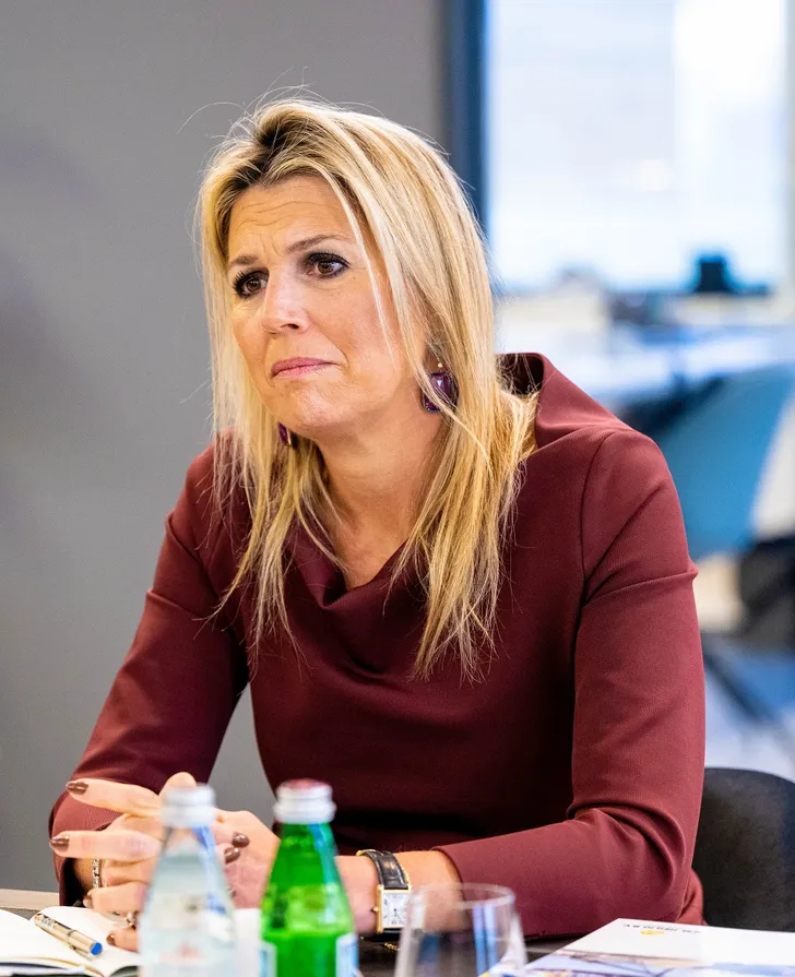 Woensdag schotelde de koningin ons opnieuw wat nieuws voor. Voor een werkbezoek aan FastFeetGrinded, een bedrijf dat zich inzet voor het verduurzamen van de (sport)schoenindustrie, bestelde ze een bruinrode top met watervalhals.