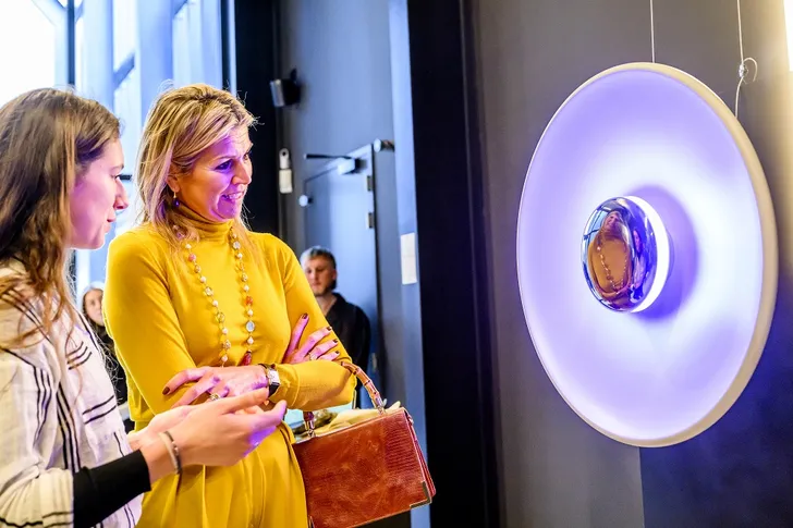 De regen tikt tegen de ramen, de lucht is grijs en toch kregen we donderdag een zonnetje te zien. Een koninklijk zonnetje dan, want Máxima ging donderdag gekleed in felgele kleding tijdens twee werkbezoeken in Eindhoven. Haar coltrui en wijde plooibroek zijn gekocht bij Max Mara, haar rode jas bij Oscar de la Renta.