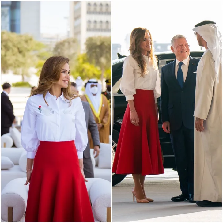 Gaan we door naar de mooiste outfit van de week. Die werd wat mij betreft gedragen door koningin Rania van Jordanië. Tijdens de uitreiking van de 2022 Zayed Award for Human Fraternity droeg het stijlicoon naast een felrode midirok van Emilia Wickstead een witte blouse van de Libanese designer Salim Azzam. Je moet goed kijken, maar naast een rode roos zijn er op het kledingstuk ook vogels te zien. Uit een Instagrambericht van Azzam blijkt dat de dieren er niet zomaar opstaan. ‘De vogels op dit stuk belichamen de waarden waar ze voor staan: tolerantie, goede wil en een niet aflatende inzet voor wereldvrede.’