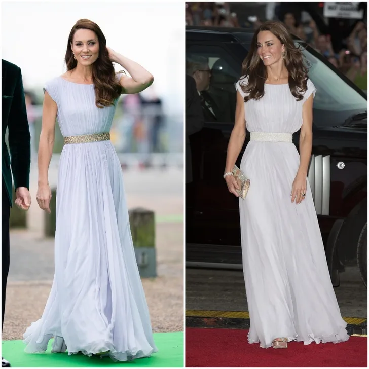 Kate was eveneens aanwezig bij het milieubewuste gala en droeg de Alexander McQueen van haar rode loper-debuut (2011). Het kledingstuk was bij het bovenlijfje wel iets ingenomen en gekuist, maar het was niet moeilijk om de jurk te herkennen. Erbij een andere riem, van Jenny Packham.
