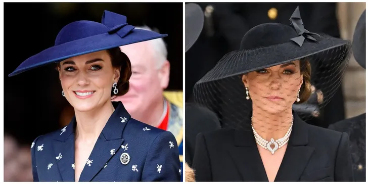 Bij de donkerblauwe hoed moest ik overigens meteen denken aan wat Catherine droeg tijdens de staatsbegrafenis van koningin Elizabeth ll. Was er sprake van twee voor de prijs van één?