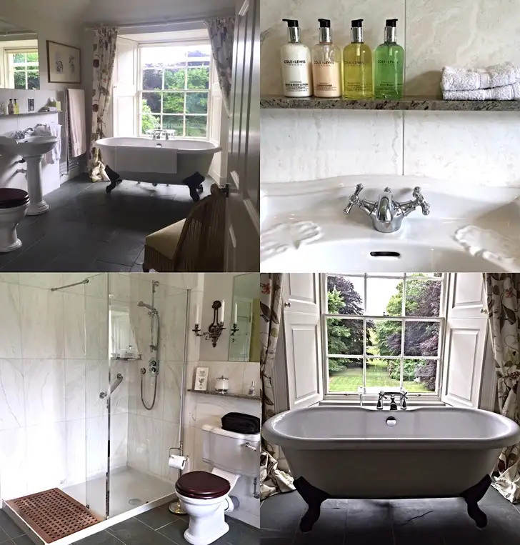 Er is niets fijners dan een grote badkamer bij je hotelkamer. Toch? Deze voldoet aan alle eisen en meer. Prachtig, groot bad op pootjes én uitzicht over de tuin met gigantisch roodbeuken. Perfect plek om de stijve spieren na een rondje Schots golf tot rust te laten komen.