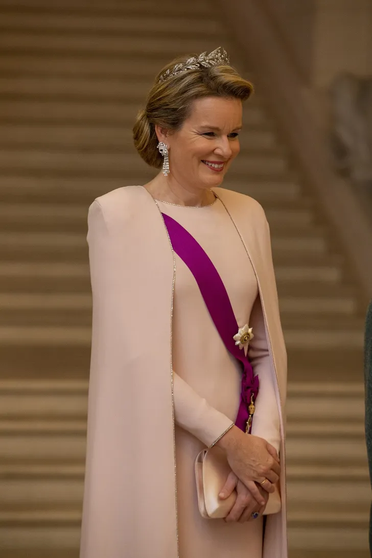 Nu ze de vijftig nadert, lijkt het wel alsof Mathilde zichzelf opnieuw heeft uitgevonden. In plaats van veilige, tuttige ensembles draagt de Belgische koningin opeens moderne broekpakken en frisse, flatterende jurken. Ook de capejurk die deze week in beeld kwam, haalt het beste in haar naar boven. De zachte tint van de stof sluit namelijk perfect aan bij haar huid en persoonlijkheid, terwijl de cape met rechte schouderlijn het geheel voorziet van pit en grandeur.