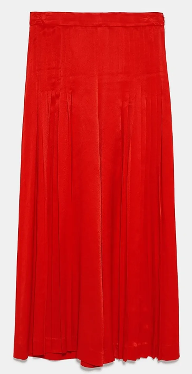 De kleur van dit seizoen is een soort licht felrood. Draag het liefst een hele outfit in rood. Door je ton-sur-ton te kleden, lijk je slanker.