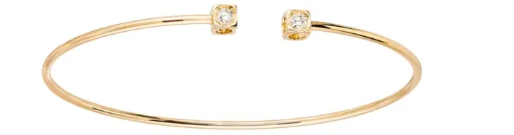 Zo bestaat de sluiting uit twee gouden kubussen, waar diamanten in zijn verwerkt. Doordat ze niet helemaal aan de oppervlakte zitten, maar juist iets erin, komt de schittering van de steentjes goed tot zijn recht. In Nederland kun je voor juwelen van Dinh Van Paris terecht bij Bonebakker Juwelier of Schaap en Citroen. Reken op prijzen rond de 2000 euro.