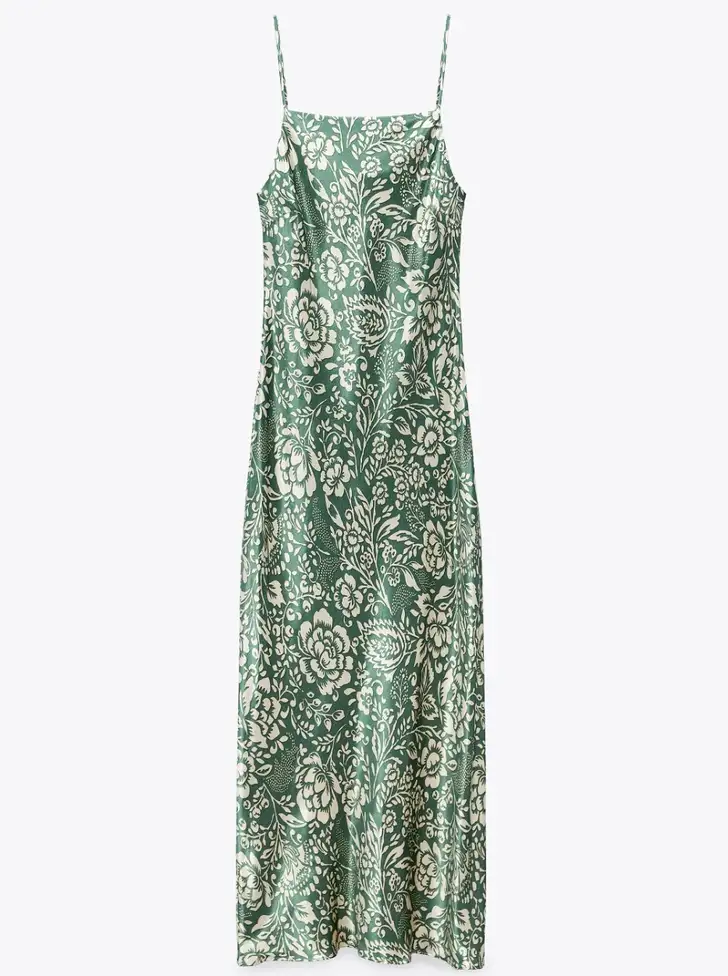 5 Midi jurk met print en spaghetti bandjes van Zara € 39,99