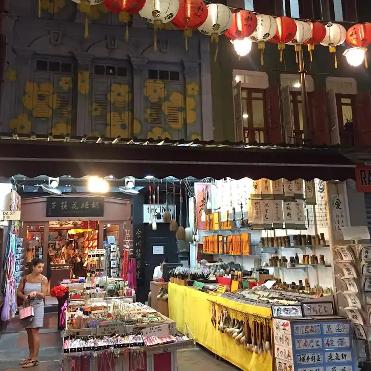 Begin bij (Jamae) Mosque street en loop dan via Pagoda street (daar vind je ook een prachtig Indiaans tempelcomplex, vooral naar binnenlopen en een wierookje opsteken) langs de stalletjes met exotische waar Chinatown in. Van edelstenen tot chopsticks en van stinkende (maar lekkere!) durians tot goedkope plastic herrie. Kortom, kleurrijk Chinatown tussen de 19e eeuwse huizen.