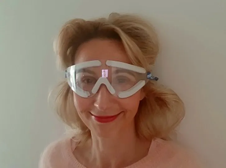 Klein nadeel van dit hele projectje: Naast dat ik een week lang die charmante duikbril op moet tijdens het slapen, mag ik een hele week geen make-up op. De komende dagen ga ik dus los op het verfraaien van mijn wenkbrauwen, draag ik knalrode lipstick, én maak ik de blits met één van mijn favoriete zonnebrillen.