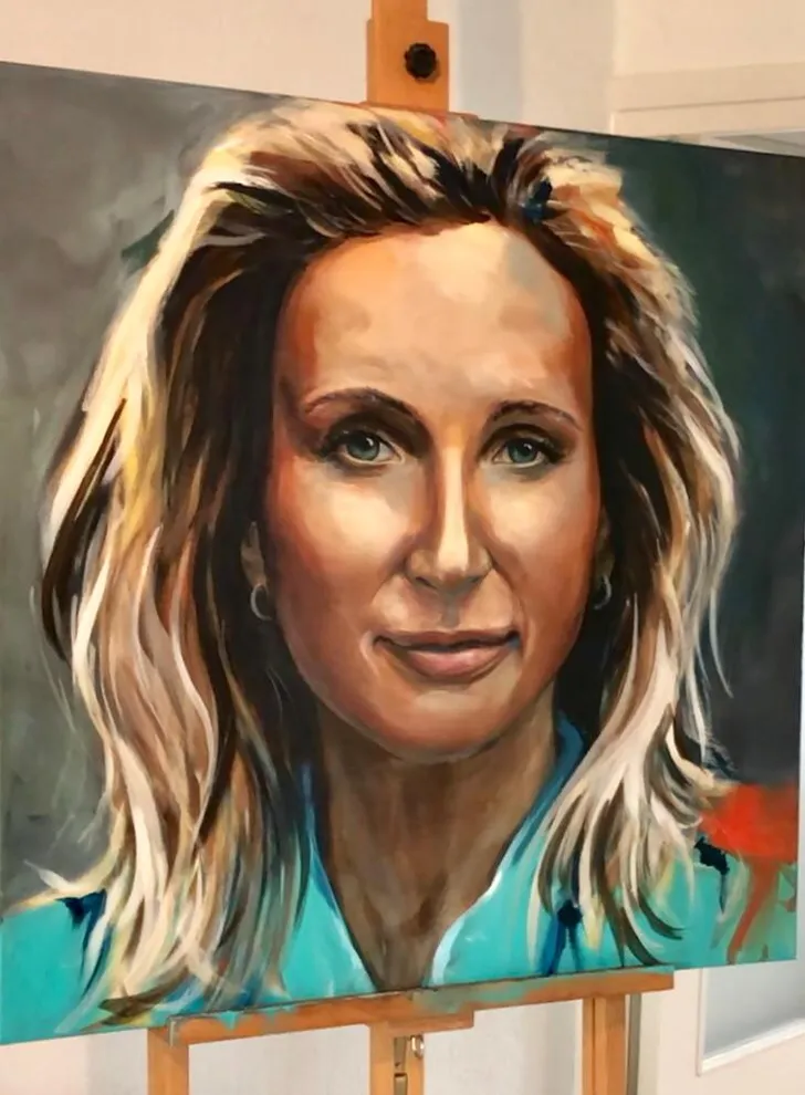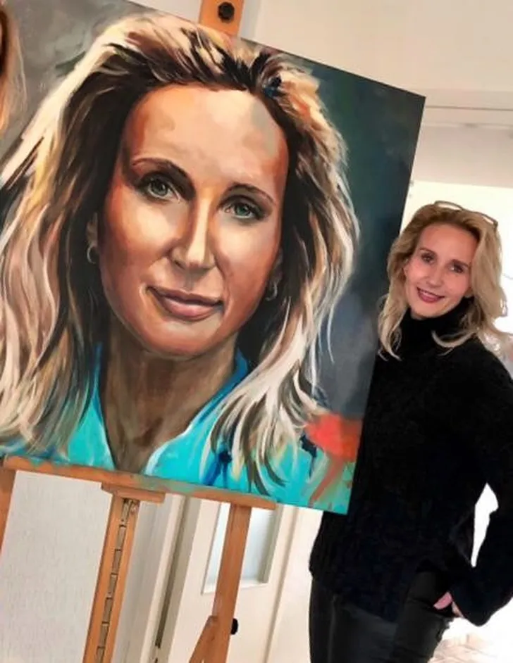 Mylene begon te lachen toen ze mijn blik zag en gelukkig rekte ze het toen ook niet langer, maar ik moest me nog wel even omdraaien. En mijn eerste ontmoeting met mijn eigen hoofd op doek? Dat heeft ze gefilmd.