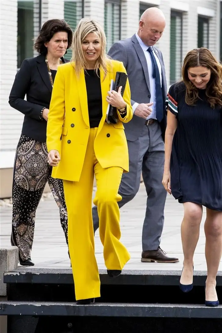 Daarbij laat geel je huid stralen, dat is ook een reden waarom koningin Máxima veel geel draagt. Wil je niet direct van top tot teen in het geel, begin dan met iets kleins, een shirt onder een jasje, of kies voor gele schoenen. Je zult direct zien dat het een positief effect geeft!