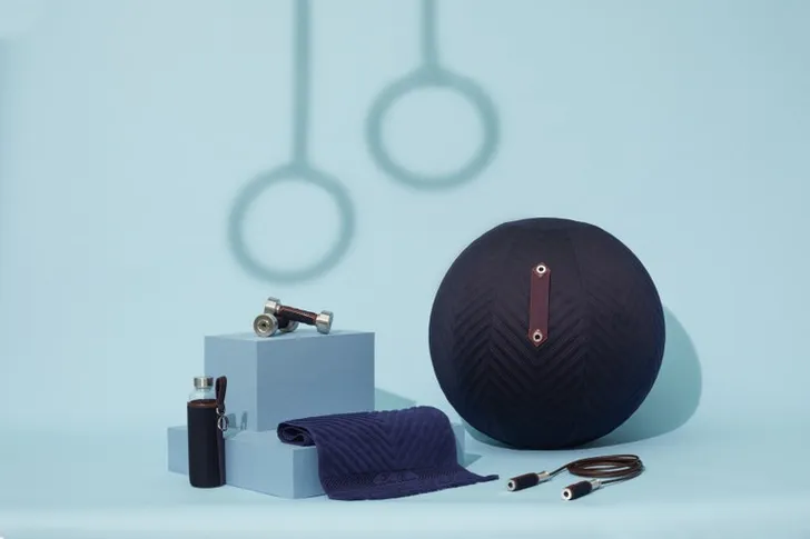Het is geen standaard fitness-spul, denk eerder aan matjes, waterflessen en haltertjes die zijn bedekt met waterproof kasjmier voor een extra tactiele ervaring.