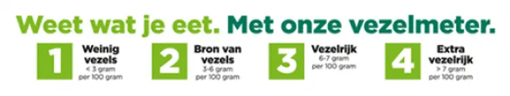 Zij hebben een vezelmeter (zie de afbeelding hieronder). Achter de naam van het brood staat in welke categorie het brood valt. Dat maakt het veel gemakkelijker om een gezonde keuze te maken! Dat zouden meer winkels moeten doen!
