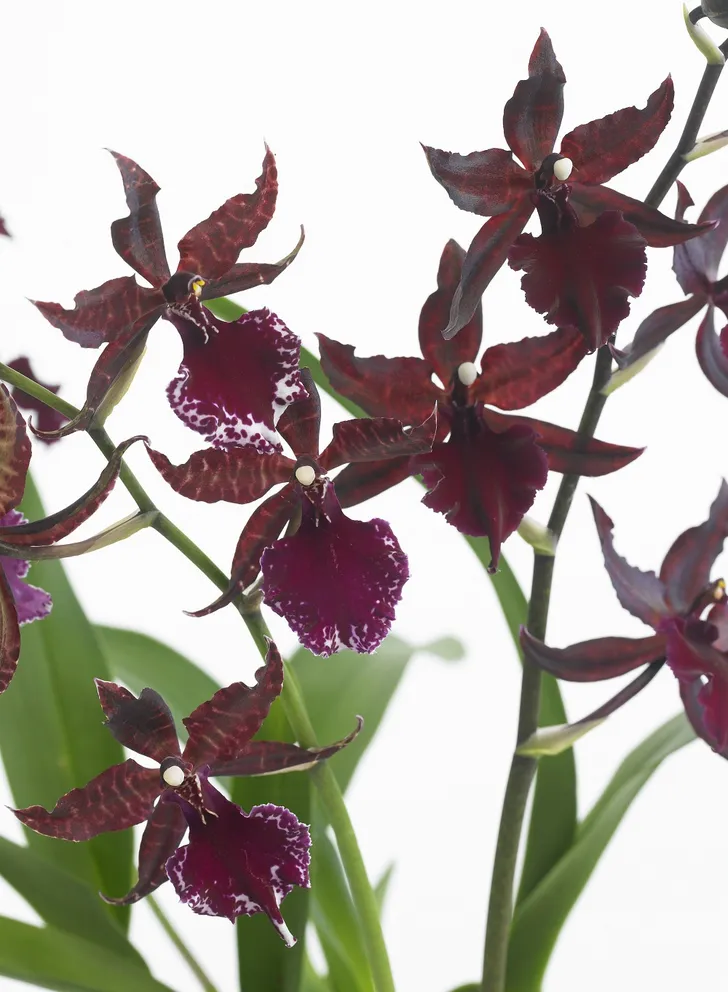 Cambria is op drie manieren een bijzondere orchidee: ze is echt rood (óf knalgeel, óf roze, óf gepatroneerd), het is een lekker vol groen exemplaar én ze is een van de weinige orchi's die geurt. Haar parfummetje zit in de spicy hoek: kaneel, peper, nootmuskaat, gember, van die dingen. Dit is een fijne luchtverfrisser voor liefhebbers van design, die tegenover al die rust iets vrolijks willen zetten, om alles in balans te houden.