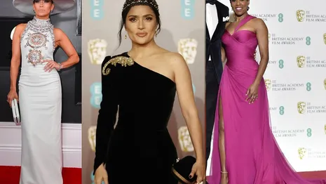 1. Salma Hayek (52) bezocht het Britse awardgala in een prachtige creatie van Gucci.