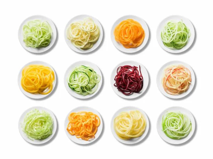 Andere potentiële groentennoedels: bietjes, wortels en zoete aardappel kun je ook (met enige kracht) aan een spiralizer onderwerpen. Omdat hier heel weinig koolhydraten inzitten, moet je wel zorgen voor een goed vullende saus, om niet heel snel weer te rammelen van de honger.