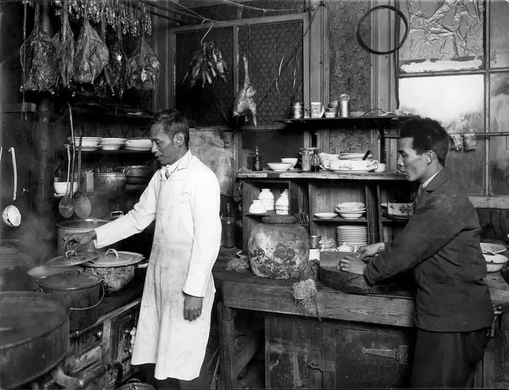 Keuken van een Chinees restaurant in het 'Chinatown' op Katendrecht, 1936