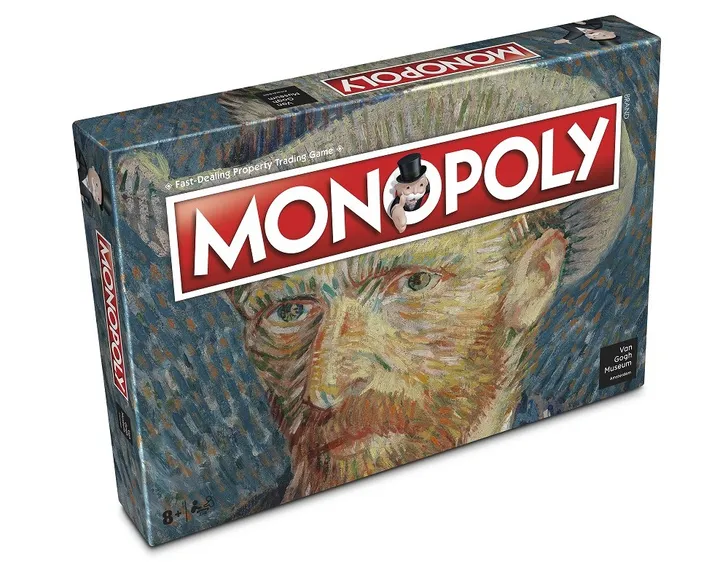 De jaren in Zundert en Nuenen. De inspiratie die hij in Antwerpen vond. Het blauw en geel van Arles. Het is allemaal terug te vinden in het Van Gogh Museum Monopoly spel. Deze editie is speciaal voor het Van Gogh Museum gemaakt. In het spel volg je het leven van Vincent van Gogh aan de hand van geselecteerde werken uit de collectie, die verschillende periodes uit zijn leven weergeven. Voor deze editie zijn er twee pionnen zijn gemaakt die alleen in dit spel gebruikt worden. Daarnaast hebben de huizen en hotels in het spel de Van Gogh kleuren Sunflower Yellow en Dutch Orange.