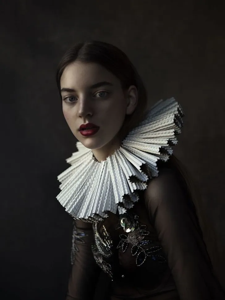 Nog een voorbeeld: Boots serie portretten van vrouwen met ouderwetse molensteenkragen. Die gemaakt zijn van... nou ja, maandverband bijvoorbeeld.