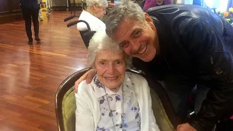 Wie denkt dat George Clooney al tot over zijn oren in de luiers en hydrofieldoeken zit, en geen tijd meer heeft voor zijn fans, heeft het mis. De 55-jarige hollywoodacteur bezocht onlangs geheel onverwachts het Britse bejaardenhuis Sunrise of Sonning om een 87-jarige fan op haar verjaardag te verrassen.