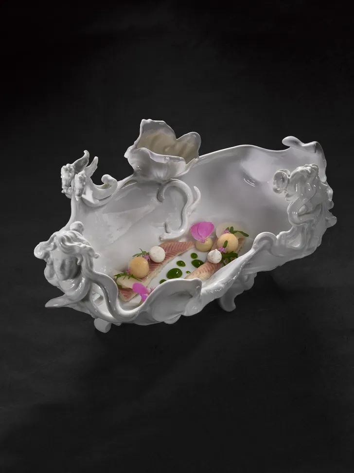 Voor de curator, de kok, de stylist en de fotograaf moet het zenuwslopend zijn geweest: een gerecht presenteren in eeuwenoud erfgoed. Voor het erfgoed in kwestie was het vast enig, om voor één keer weer gewoon een gebruiksvoorwerp te mogen zijn.