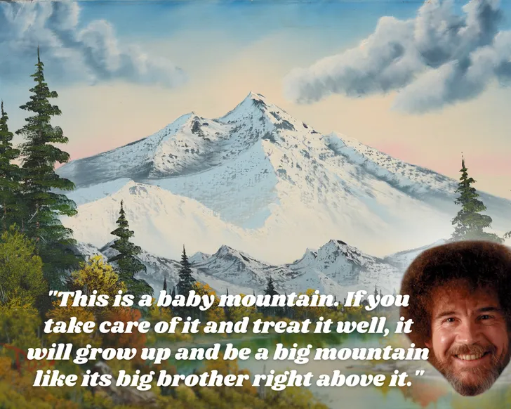 Wil je net zo schilderen als Bob Ross? Een landschap met mighty mountains en happy little trees?