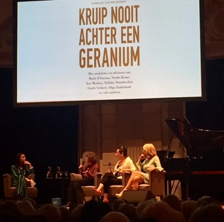 Barbara van Beukering trapte af met een lezing over 'ouder worden'. Voor haar boek 'Kruip nooit achter een geranium' interviewde ze 50+ vrouwen van Neelie Kroes tot Sonja Barend en Hedy d'Ancona.