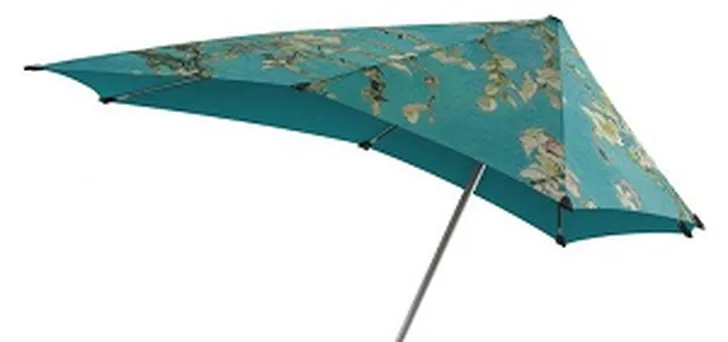 Geeft tóch nog wat zonnigs als het met bakken uit de hemel komt, want die hemelse kleur doet denken aan zonniger tijden. Stormbestendige paraplu met aerodynamische vorm.