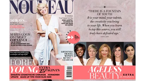 Marja verklapte dat het niet alleen het gebruik van goede crèmes is, maar dat ze ook van de zelfgebakken kroepoek van man Wout een twinkel in de ogen krijgt. Prompt volgde er een redactierondje waarbij iedereen haar ultieme anti-agingtips deelde. Van het dragen van een nachtbeha (“de boel stevig en strak houden”) tot het slikken van ‘haarpillen’. Maar ook en vooral: lachen, voortgaan, en jezelf blijven ontwikkelen. No matter what age. Daarom in dit nummer 25 pagina's met Ageless Beauty.
