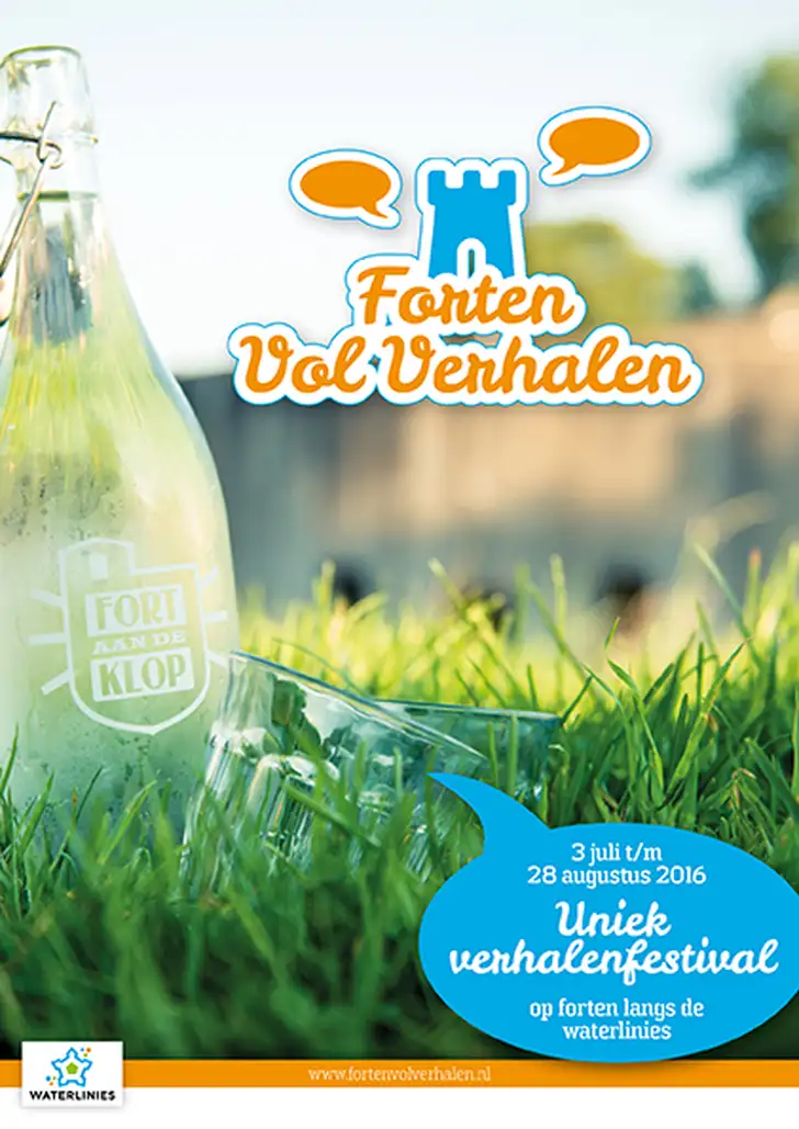 Van 3 juli t/m 28 augustus vindt het verhalenfestival Forten vol Verhalen (voorheen Zomer vol Verhalen) plaats op 18 forten en locaties van de Nieuwe Hollandse Waterlinie, Stelling van Amsterdam en de Zuiderwaterlinie. Zeg de digitale media voor een mid¬dag vaarwel en laat je betoveren door echte verhalen en de entourage van het fortenerfgoed. Luister ademloos naar meeslepende woorden of droom met de ogen dicht weg in een nieuw avontuur.