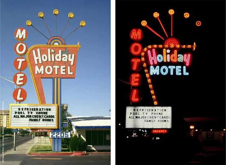 Met de tentoonstelling American Neon Signs by Day & Night brengt het Nederlands Fotomuseum een hommage aan de kunstenaar Toon Michiels (1950 – 2015). Tijdens zijn road trips door de Verenigde Staten midden jaren zeventig raakte Michiels gefascineerd door de neon signs die hotels en restaurants hadden geplaatst om de voorbijrijdende automobilist te verleiden tot een stop. Voor hem symboliseerden deze neons de typische Amerikaanse on the road cultuur. Hij fotografeerde de neon signs systematisch, eenmaal overdag en eenmaal ’s nacht, waaruit een reeks fraaie tweeluiken ontstond. Meer dan 35 jaar later wordt zijn werk herontdekt en op waarde geschat en voor het eerst in Nederland en daarbuiten