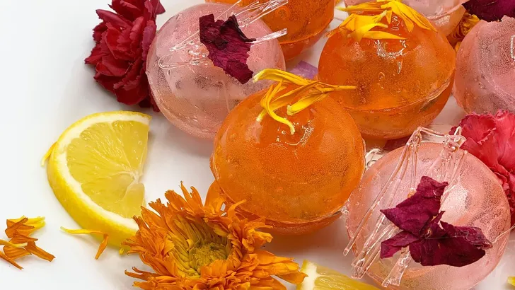 Wie het helemaal mooi wil maken, gaat ook nog aan de gang met eetbare glitter. Als de suikerbal in warm water of warme melk wordt gelegd, smelt de suiker en komen de ingrediënten in vrij.