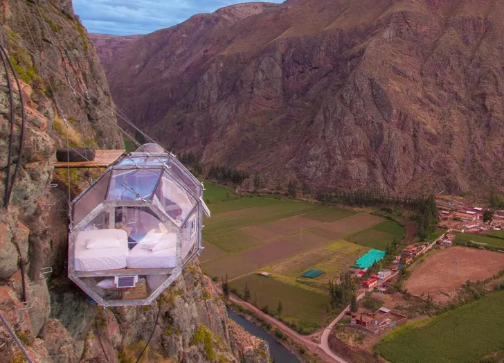 de avonturiers onder ons zullen tijdens een reis door Peru ongetwijfeld willen overnachten in de Skylodge Adventure Suites. Deze drie glazen capsules hangen aan de bergwand in de Heilige Vallei op zo’n 300 meter hoogte. Om deze accommodatie te kunnen bereiken moet er wel wat arbeid verricht worden: het is alleen te bereiken via een klim langs de bergwand. Eenmaal in de cabine is het verblijf comfortabel en van alle gemakken voorzien – inclusief badkamer.