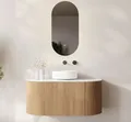 De ovale spiegel is de favoriet van veel interieurstylisten op dit moment. Door de langwerpige vorm oogt de ruimte optisch hoger, wat ideaal is voor kleinere badkamers. De LED-verlichting zit subtiel achter de rand verwerkt, wat zorgt voor een prachtige, indirecte gloed op de muur. Dit zogenoemde 'backlight' effect is sfeervol als je in bad ligt, maar geeft ook voldoende licht aan de voorkant voor je dagelijkse routine.