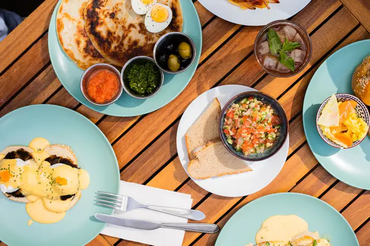 All day brunch in Tel Aviv-stijl, als een minivakantie voor je ziel. Israëlische mezze, shakshuka, challa… hip maar verwelkomend en vooral heel erg lekker.