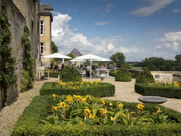 ... en eindeloos op het terras kunt hangen – misschien afgewisseld met een loopje door de beeldschone tuin. Dit is een kasteel zoals een kasteel bedoeld is.