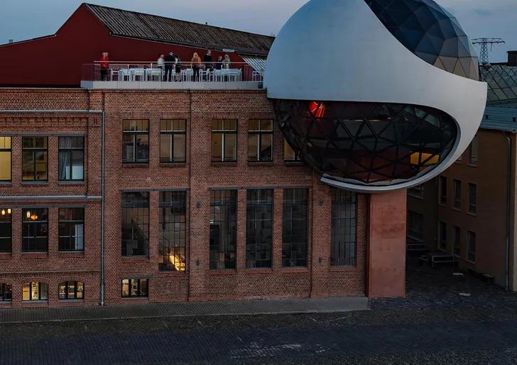 Het restaurant was ooit de bedrijfskantine van kraanfabrikant Koehne en is nu een enorme globe met twee etages die uitzicht bieden over de stad en op de hemel (Céu is hemel in het Portugees).