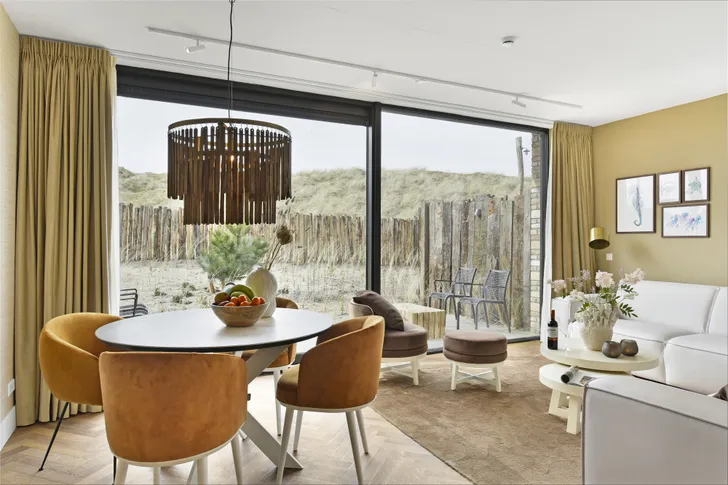 ‘Luxe aan zee, dat is het spiksplinternieuwe appartementencomplex Residence Westduin, net boven Petten, bij Sint Maartenszee. Uitzicht op de duinen vanuit een designinterieur dat in Eigen Huis & Interieur niet zou misstaan. Het is onderdeel van Landal, maar het voelt meer als een boetiekhotel.