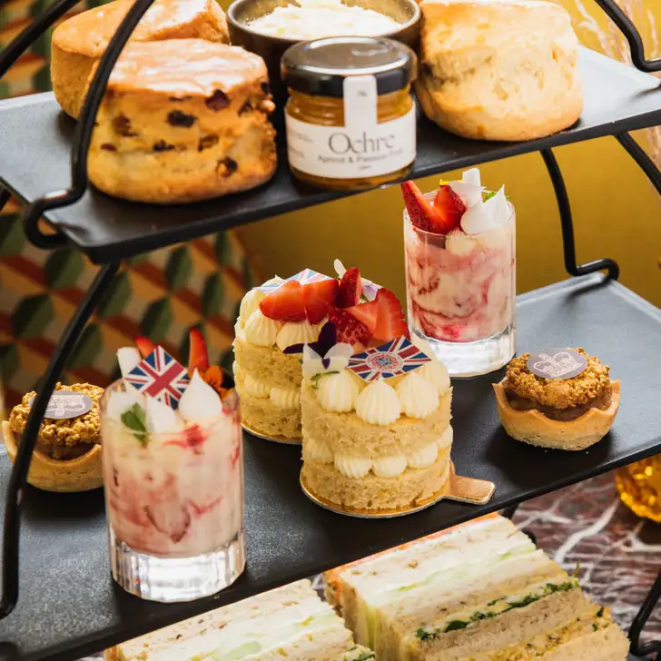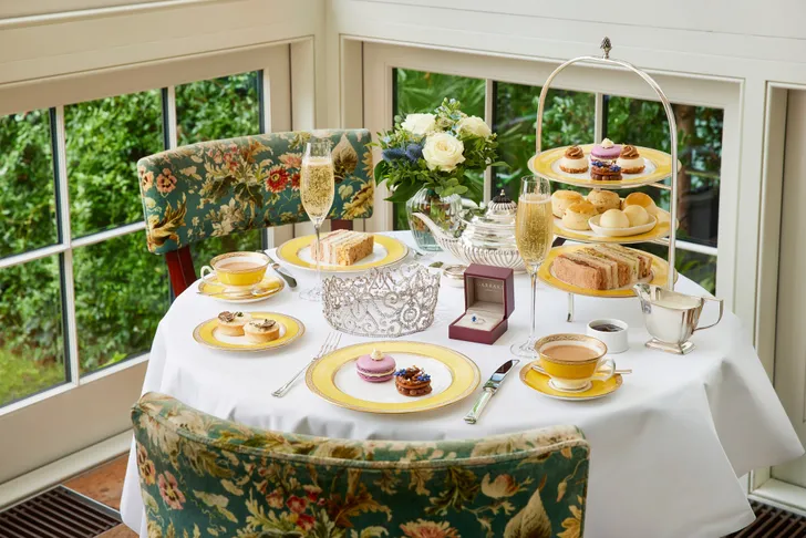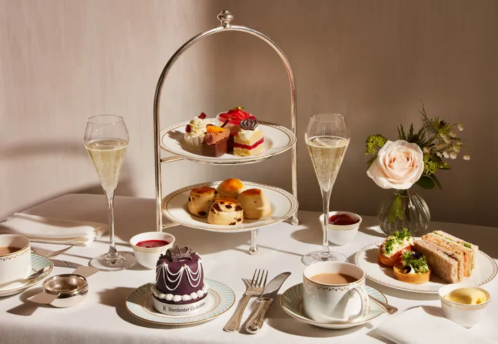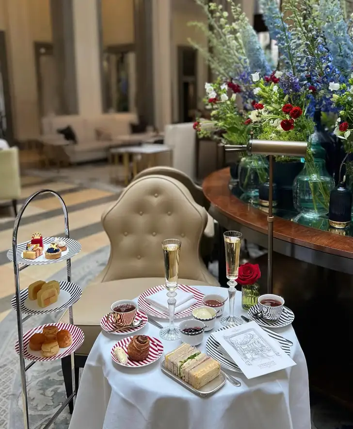 In Whitehall Place vind je deze tea, waarbij je ook kaviaar en Laurent-Perrier kunt bestellen.