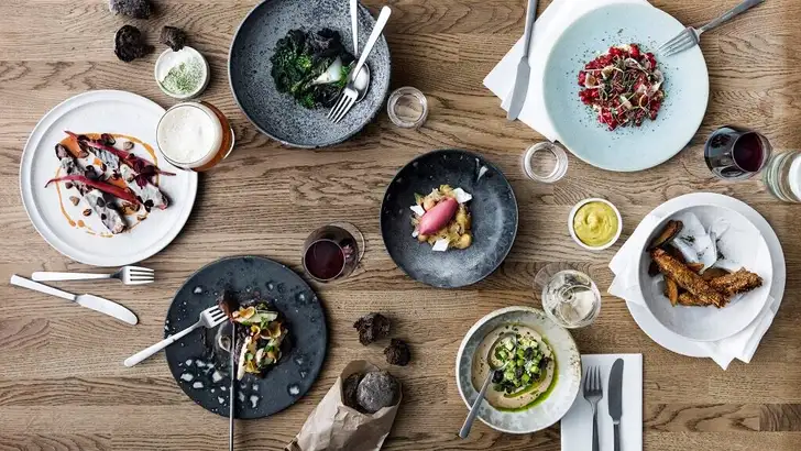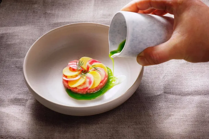 Tijdens de lunch heb je de keuze uit een drie- tot vijfgangenmenu met bijpassende wijnen en voor het diner kun je kiezen uit vier tot acht gangen.